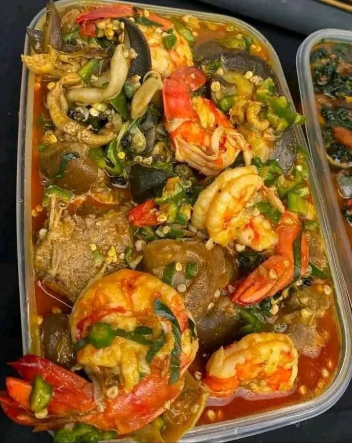 A delicoius and slightly slimy soup made with fresh okra and rich Seasonings.